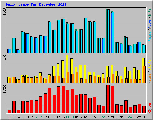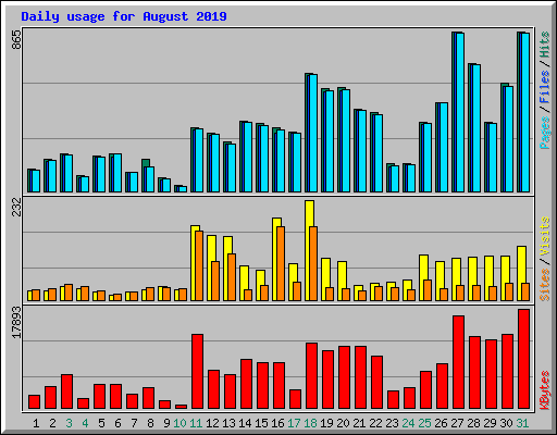 | Day | Hits | Files | Pages | Visits | Sites | KBytes | ||||||